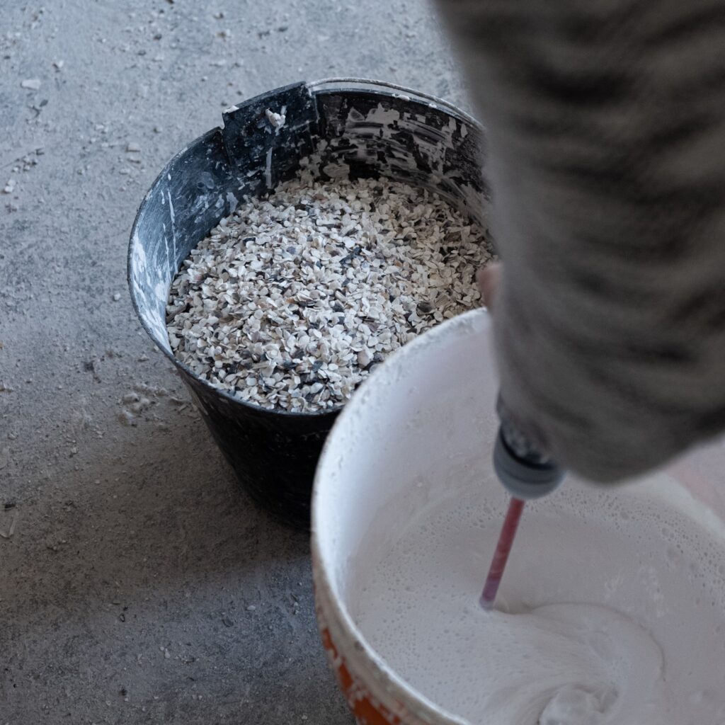 Le processus est ingénieux, les coquillages sont récupérés auprès des ostréiculteurs et des restaurants, nettoyés, puis broyés en paillettes de différentes tailles. Ces fragments sont ensuite mélangés à une matrice minérale naturelle pour créer un matériau composite résistant.
