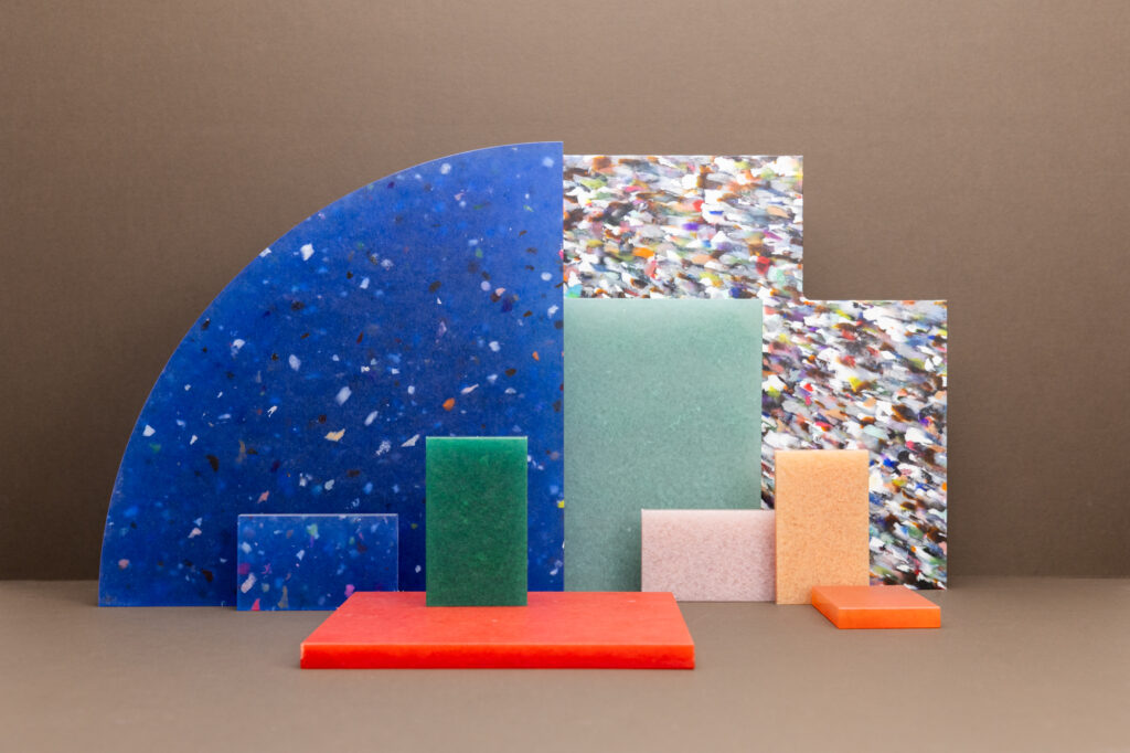 Basée au Royaume-Uni, Smile Materials transforme depuis des décennies les déchets en panneaux design pour les intérieurs commerciaux. Leur force ? Une capacité à détourner jusqu’à 3000 tonnes de déchets par an grâce à des lignes de production fonctionnant 24h/24.