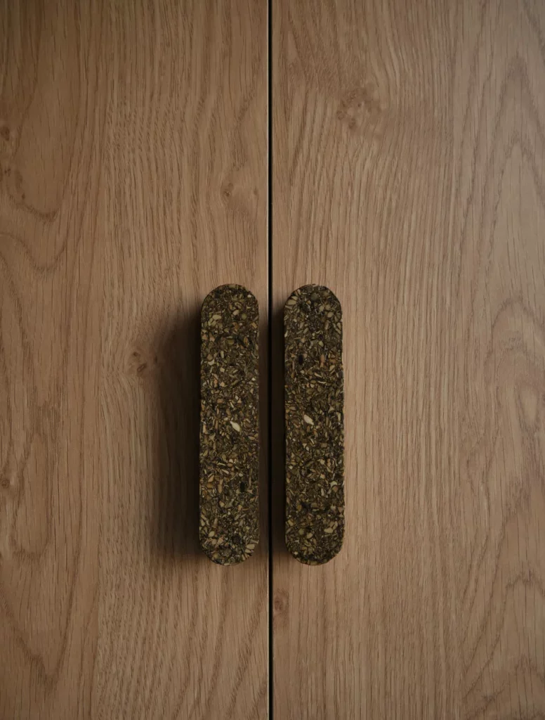 Le résultat est un aggloméré qui peut se travailler comme du bois, avec une identité visuelle très marquée et des nuances naturelles captivantes. La texture rappelle parfois le liège, parfois un panneau MDF, offrant de belles possibilités de personnalisation.